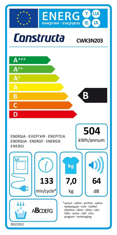 Constructa CWK3N203 7kgKondenstrockner EEK: B- Schontrommel - Soft Dry-System - div. Sonderprogramme z. B.Hygiene, Outdoor, Wolle Art.-Nr.: 0379301 Abb. ähnlich