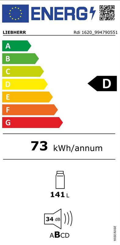 Liebherr Rdi 1620-20 60 cmKühlschrank VollraumEEK: D, LED-Beleuchtung 145 l Nutzinhalt unterbaufähig B: 60,1 H: 85 T: 62,1 cm Art.-Nr.: 0650426 Abb. ähnlich