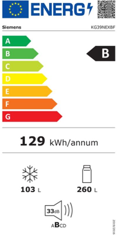 Siemens KG39NEXBF Black MMWKühl-Gefrier-Kombination BlackEEK: B, NoFrost, 39 dB hyperFresh 0°C Box, 363 l Leuchtband und GS-Beleuchtung H 203, B 60, T 665 cm IQ 500 Art.-Nr.: 1178210 Abb. ähnlich