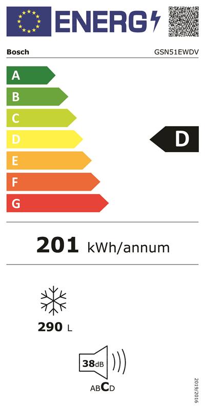 Bosch GSN51EWDV EEK: D NFStand-Gefrierschrank 70 cmnoFrost, 286 l Nutzinhalt superGefrieren,LED-Beleuchtung Maße: 161 x 70 x 78 cm Art.-Nr.: 1309005 Abb. ähnlich