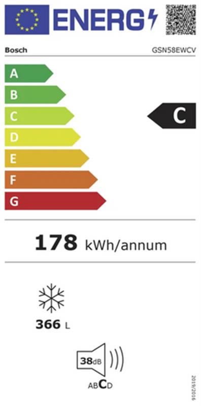 Bosch GSN58EWCV NF SLStand-Gefrierschrank EEK: CnoFrost, 366 l Nutzinhalt superGefrieren,LED-Beleuchtung Maße: 191 x 70 x 78 cm Art.-Nr.: 1309204 Abb. ähnlich